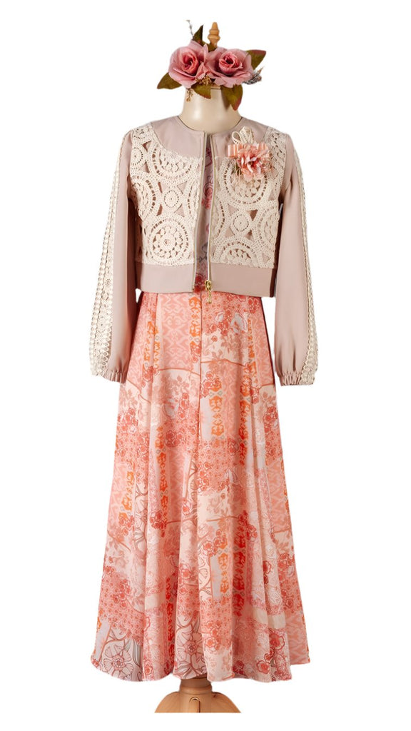 SEMA CHIFFON DRESS AND BOLERO SET - CORAL