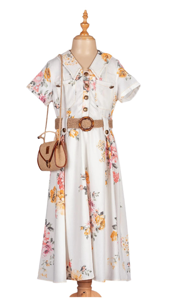 MUGE PRINTED MIDI DRESS - MUSTARD