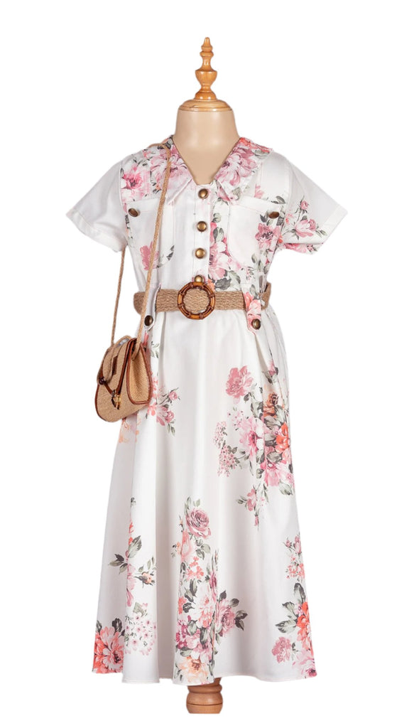 MUGE PRINTED MIDI DRESS - FUSCHIA