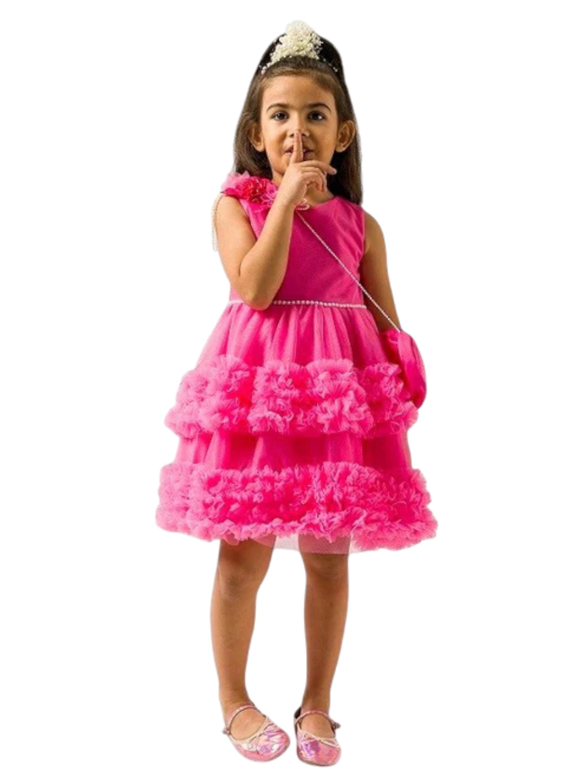 DIANA PARTY DRESS AND BAG SET- FUSHIA