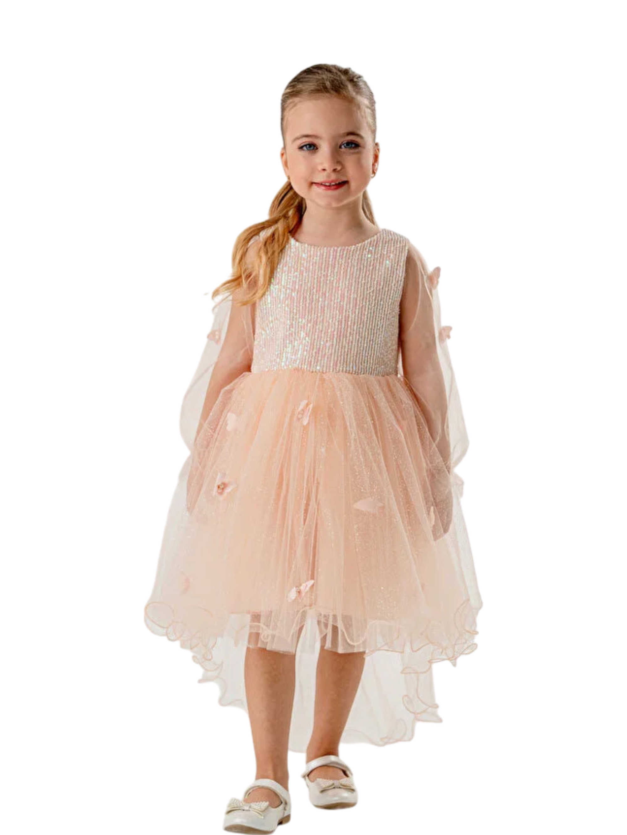 LINA HI-LOW BUTTERFLY DRESS - SALMON - 5Y is backordered and will ship as soon as it is back in stock.