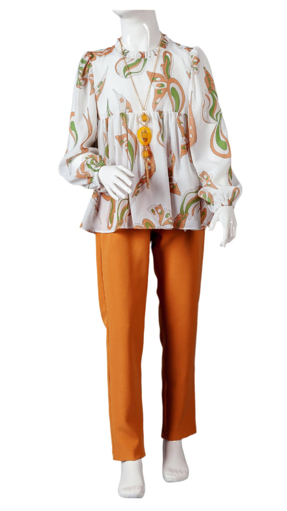 LILIA FLORAL TOP AND PANT SET - ORANGE