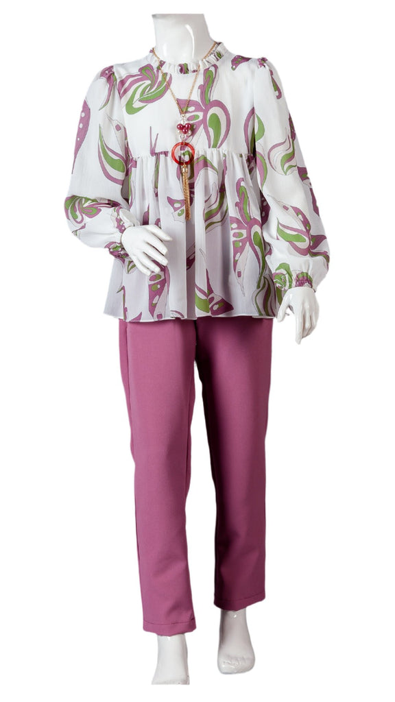 LILIA FLORAL TOP AND PANT SET - PURPLE