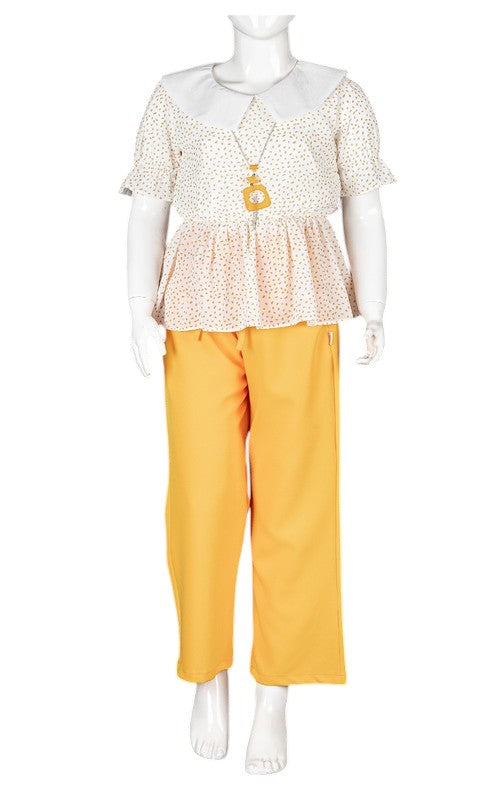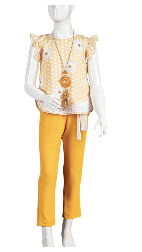 OYLUM CHIFFON BLOUSE AND PANT SET - MUSTARD