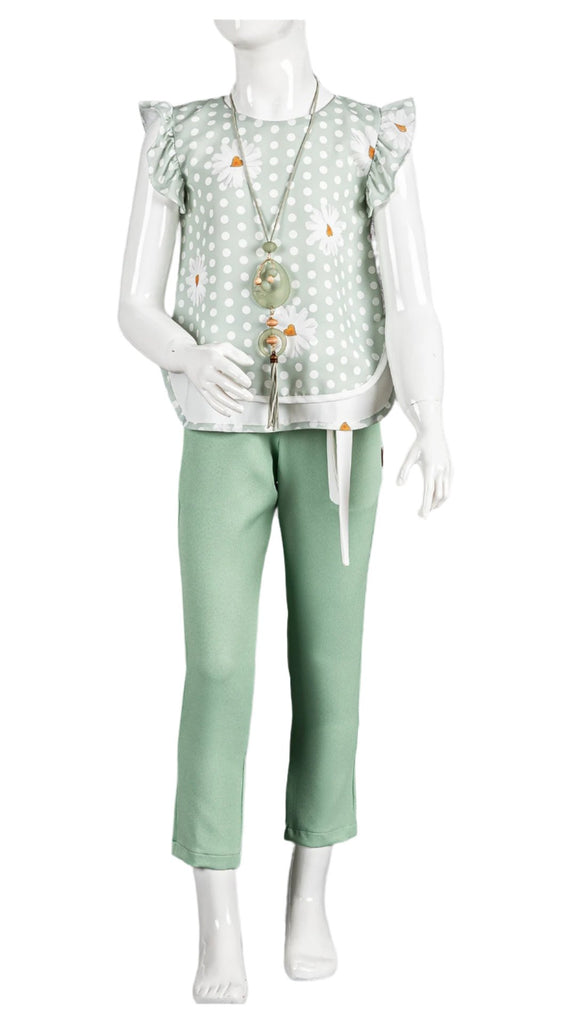 OYLUM CHIFFON BLOUSE AND PANT SET - MINT