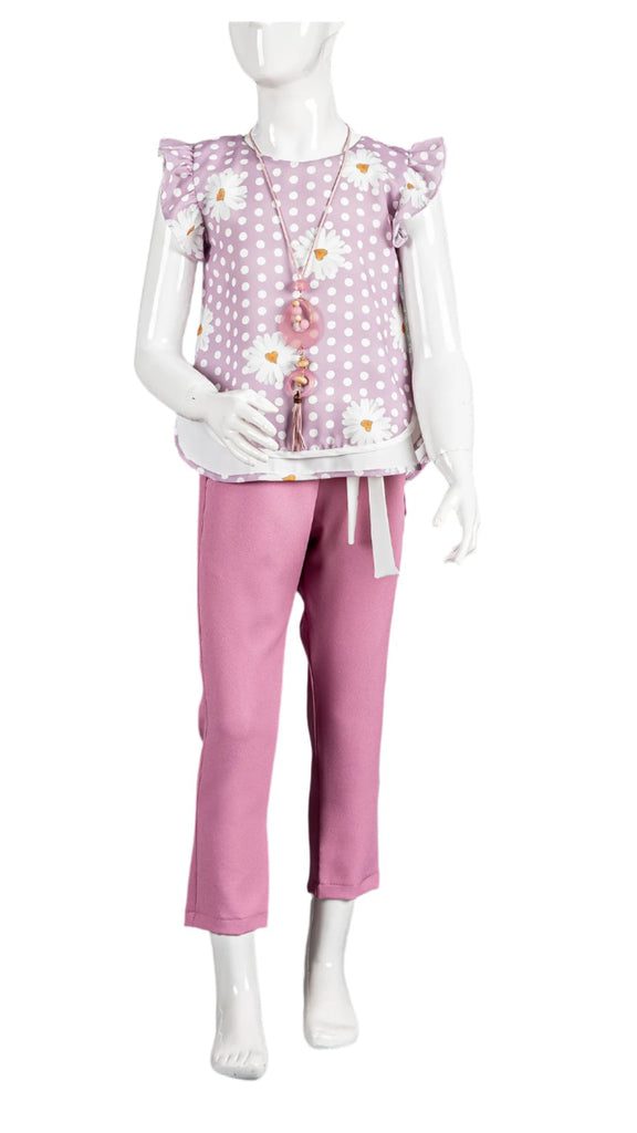OYLUM CHIFFON BLOUSE AND PANT SET - PURPLE