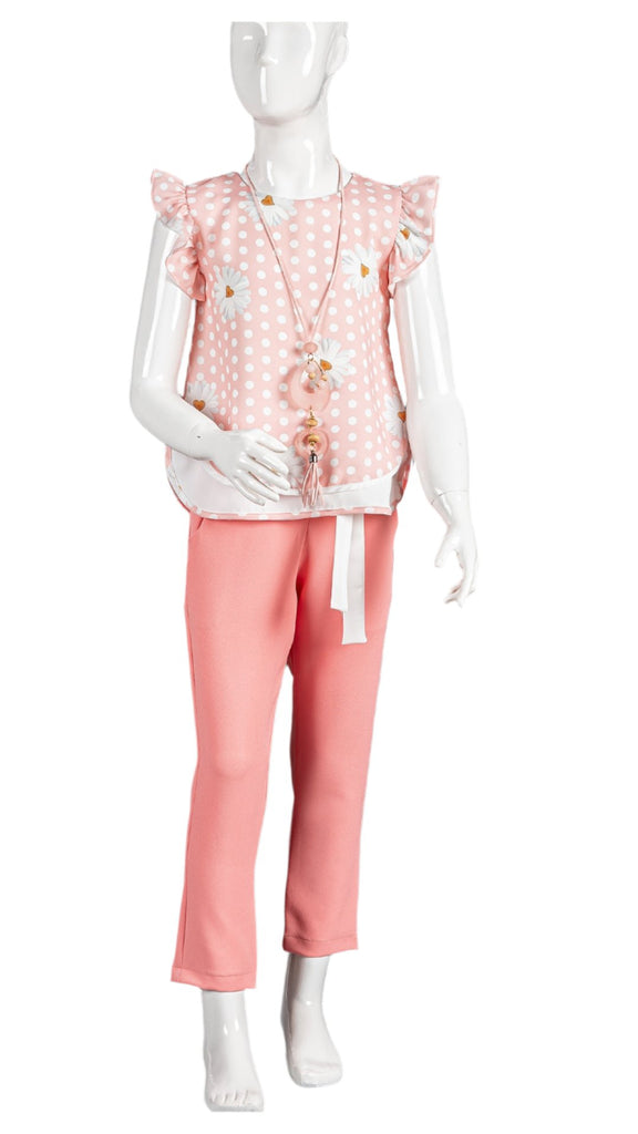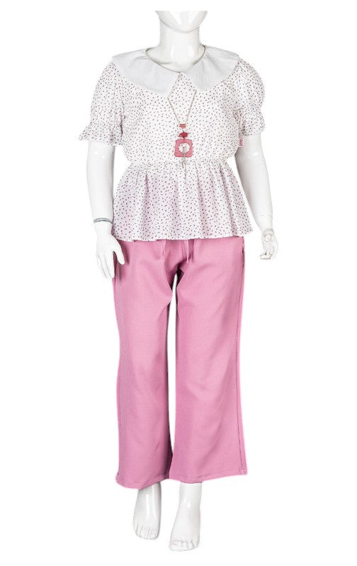 OYLUM CHIFFON BLOUSE AND PANT SET - PINK