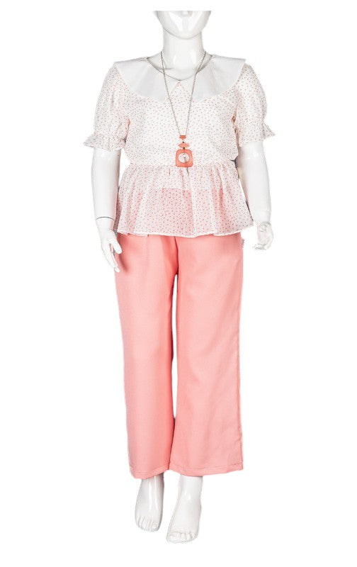 OYLUM CHIFFON BLOUSE AND PANT SET - SALMON