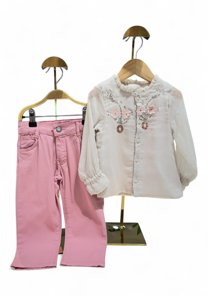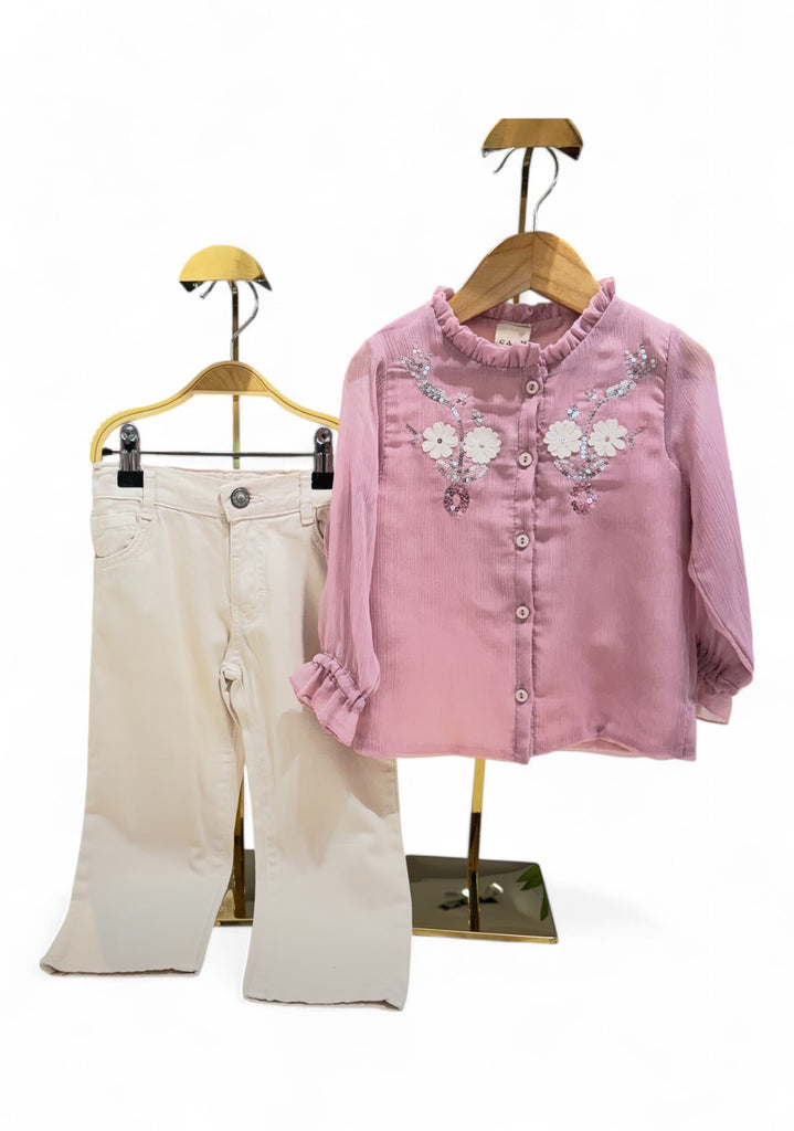 BADE FLORAL CHIFFON TOP AND PANTS SET - PINK