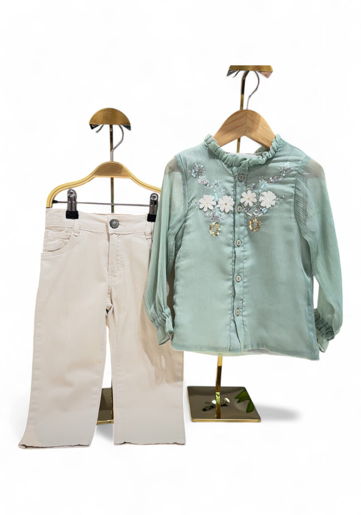 BADE FLORAL CHIFFON TOP AND PANTS SET - MINT