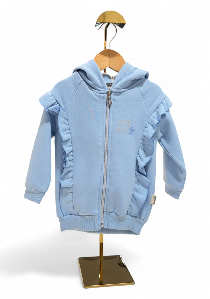 CEYLAN RUFFLED TERRY HOODY - BLUE