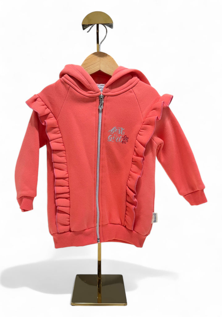 CEYLAN RUFFLED TERRY HOODY - CORAL