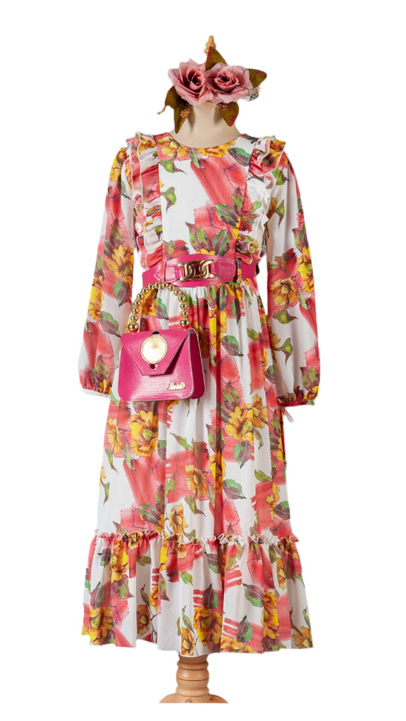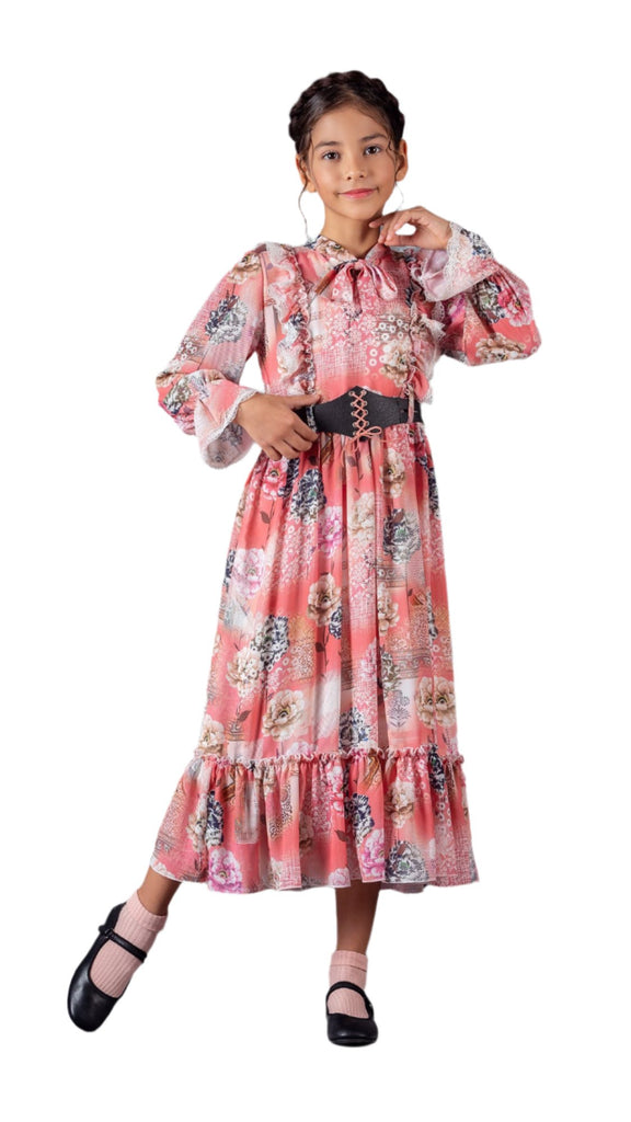 DOA MAXI PLEATED DRESS AND BOLERO SET - SALMON