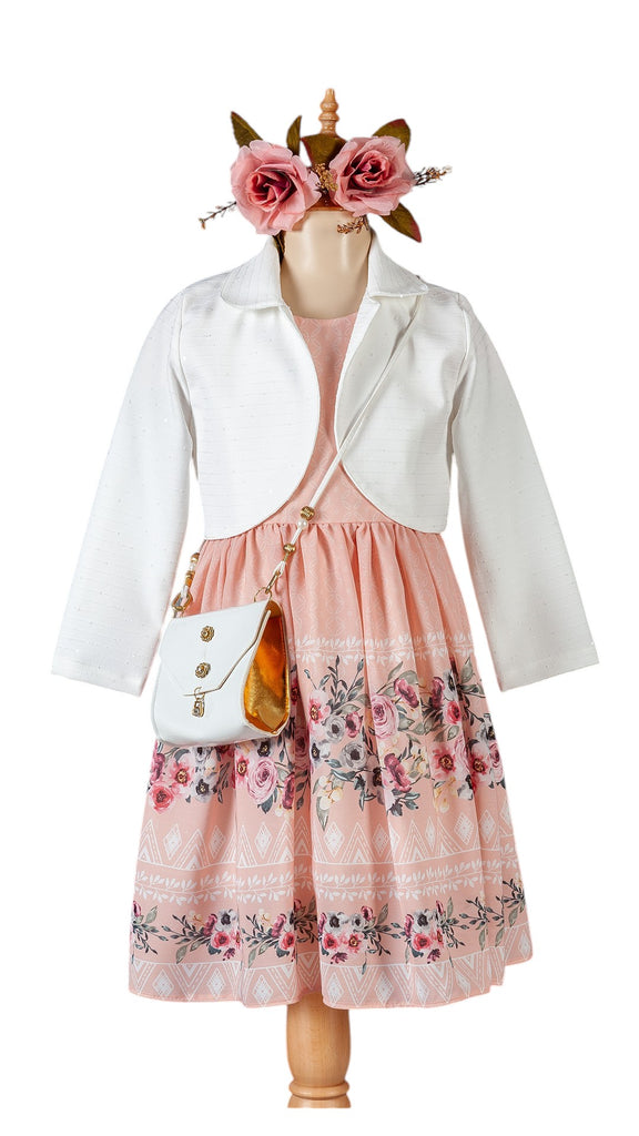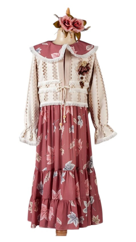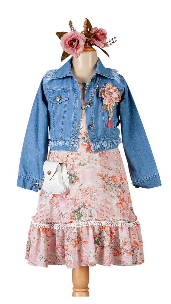 ESRA DRESS AND DENIM JACKET SET - CORAL