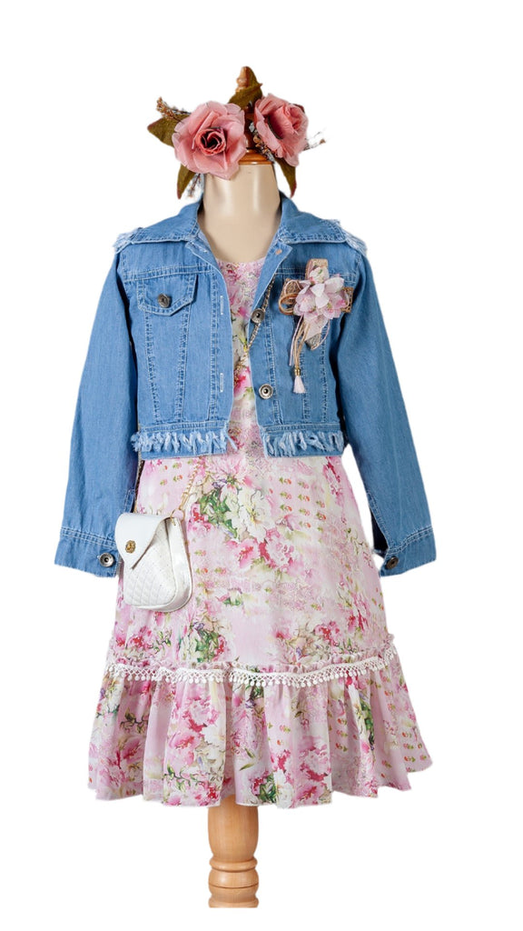 ESRA DRESS AND DENIM JACKET SET - PINK