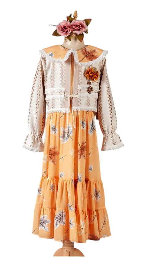 ESRA DRESS AND DENIM JACKET SET - LATTE
