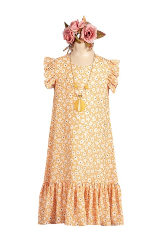 CICEK A-CUT FLORAL DRESS - YELLOW