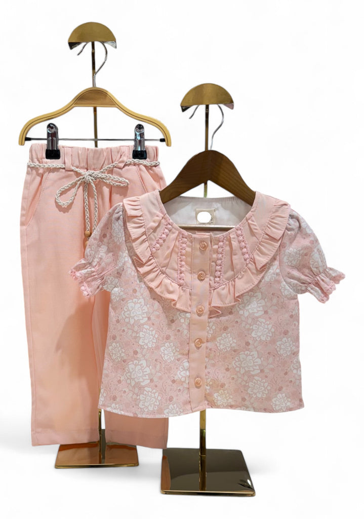 VICKY PEPLUM TOP AND BOTTOM SET - SALMON