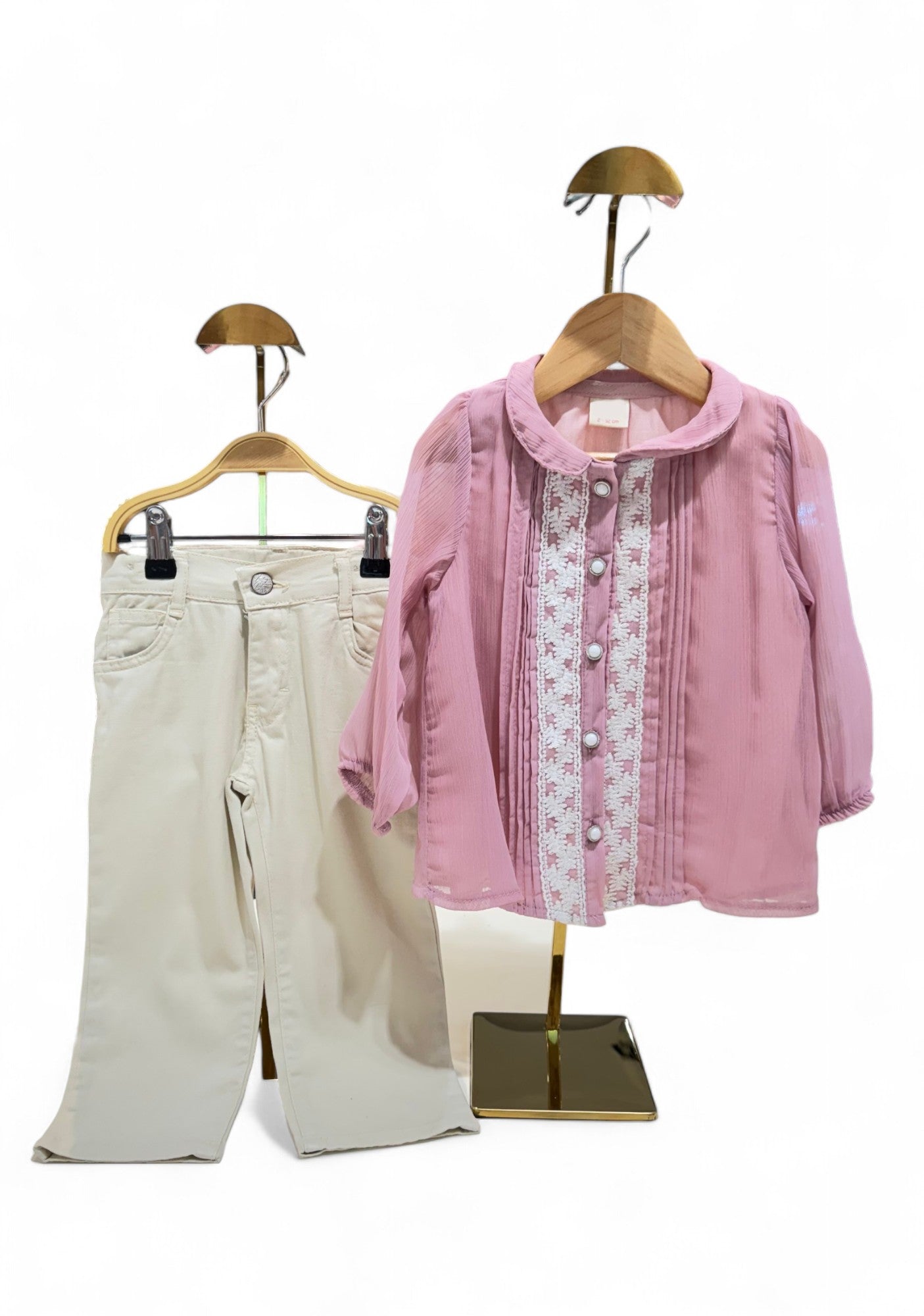 AIDA CHIFFON BLOUSE AND PANTS SET - PINK
