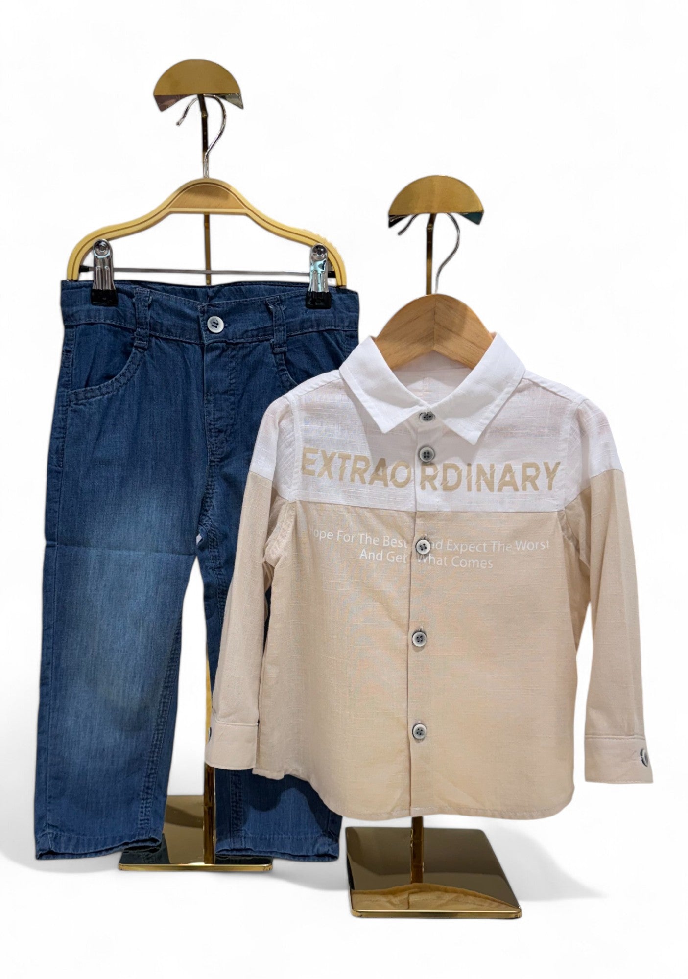 ALPHAN COTTON SHIRT SET - BEIGE - 2Y is backordered and will ship as soon as it is back in stock.