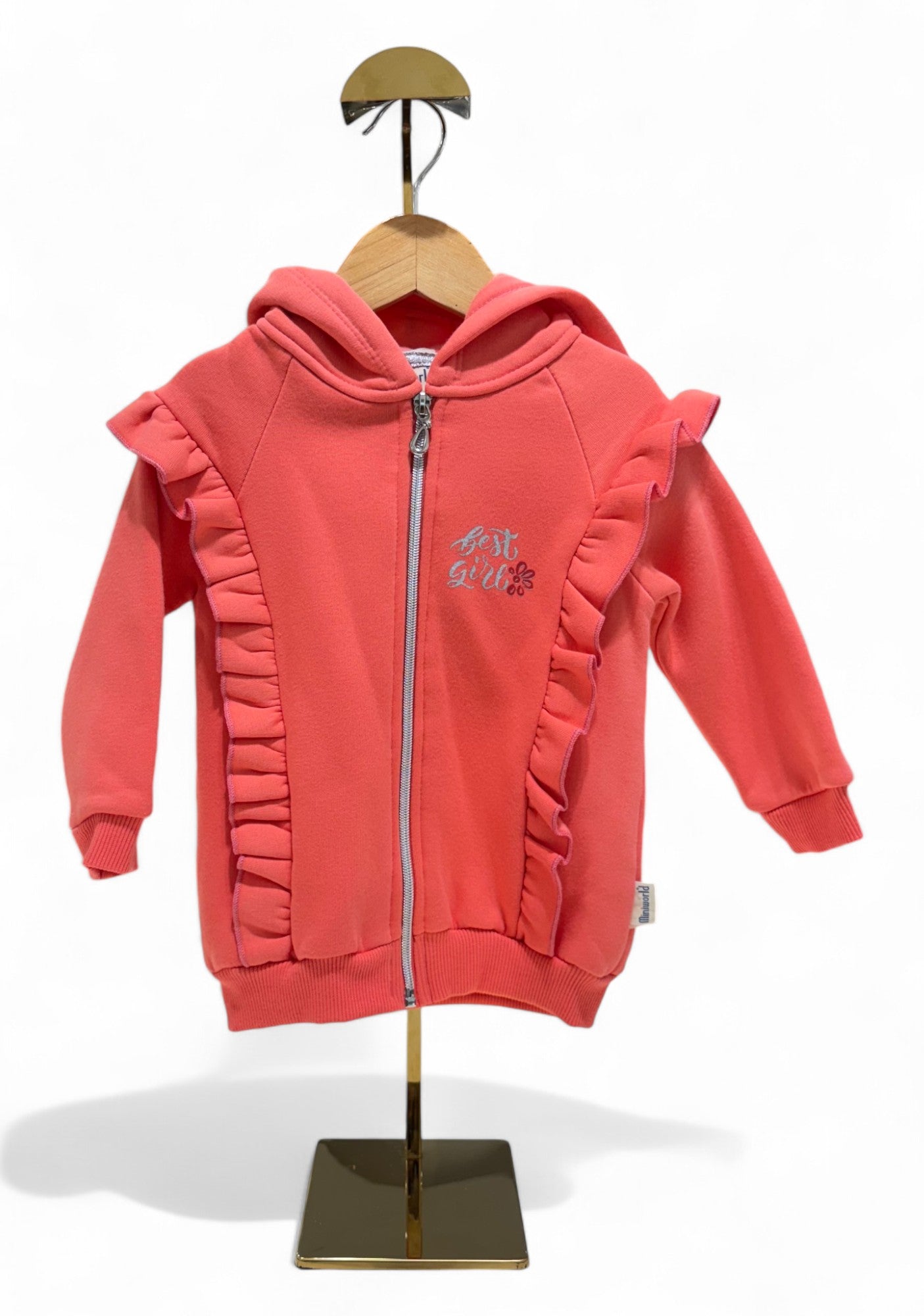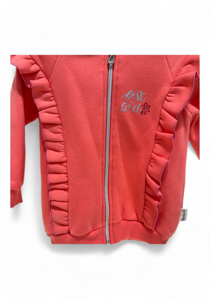 CEYLAN RUFFLED TERRY HOODY - CORAL