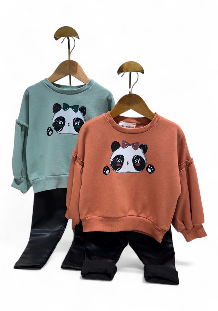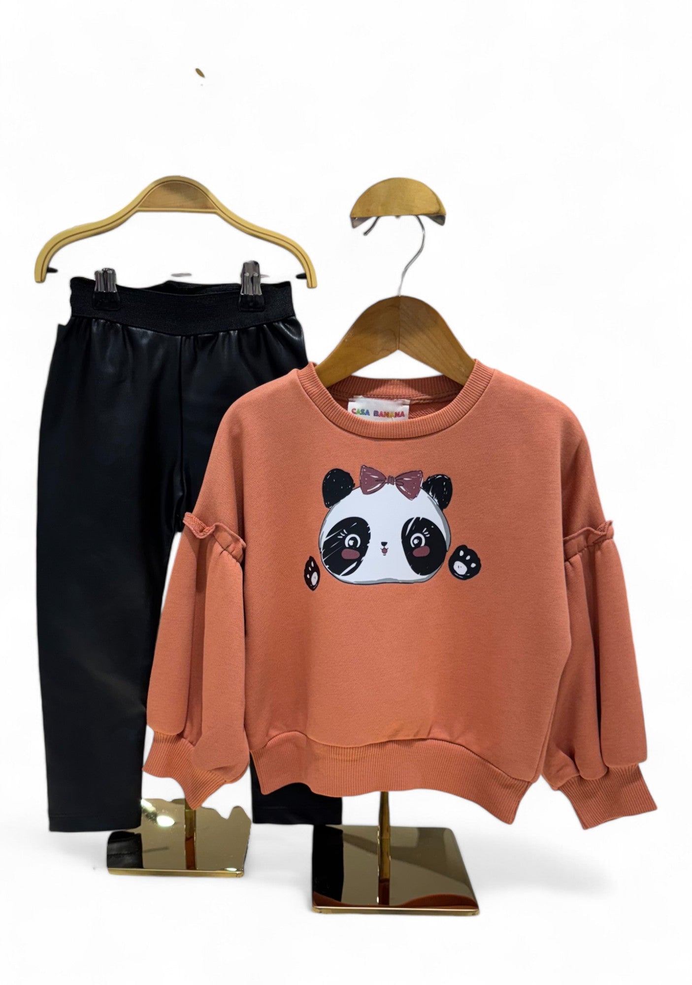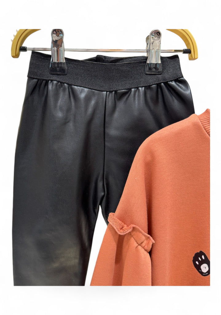 DILAN FAUX LEATHER LEGGING AND FRENCH TERRY SWEATSHIRT SET.