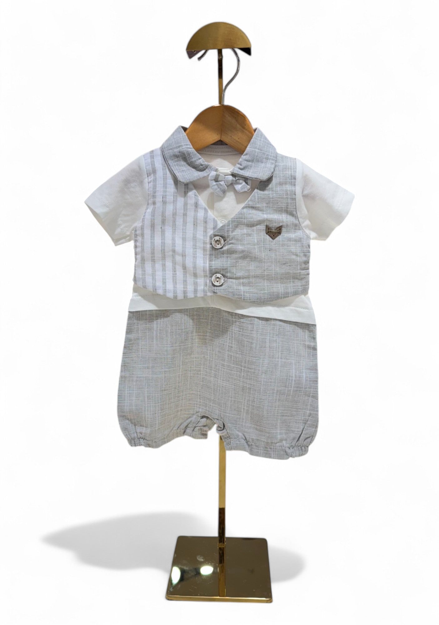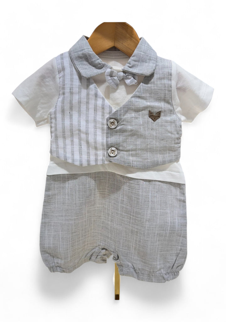 DORUK CHIC BOW JUMPSUIT - GREY - 0/3M is backordered and will ship as soon as it is back in stock.
