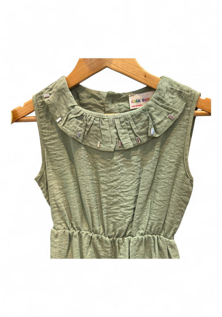FEIZA VISCOSE JUMPSUIT - KHAKI - 7Y is backordered and will ship as soon as it is back in stock.