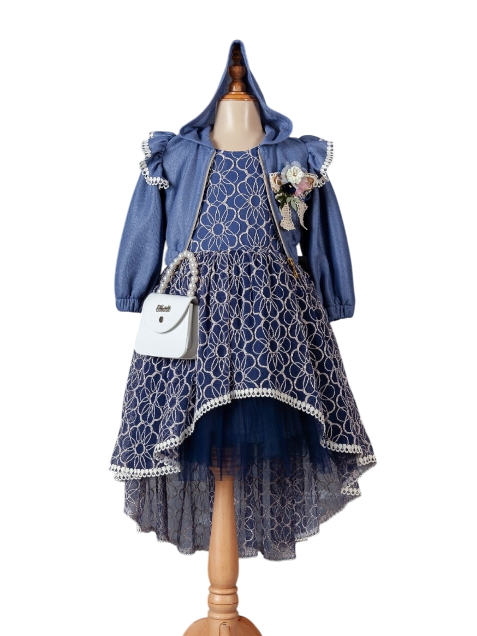 GULRIS HI-LOW DRESS WITH BOLERO - NAVY - 6-7Y is backordered and will ship as soon as it is back in stock.