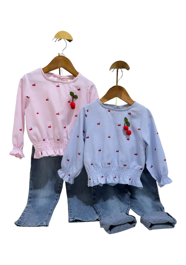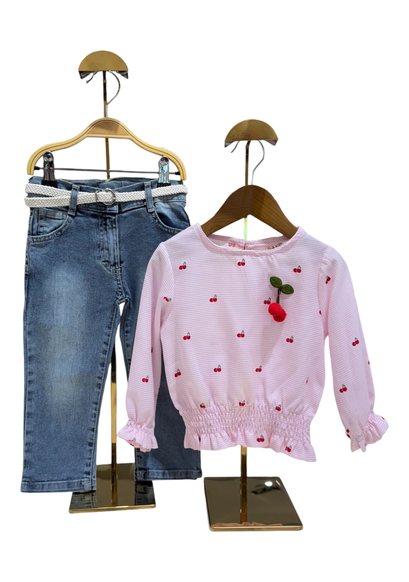 KIRAZ POPLIN TOP-DENIM SET - PINK