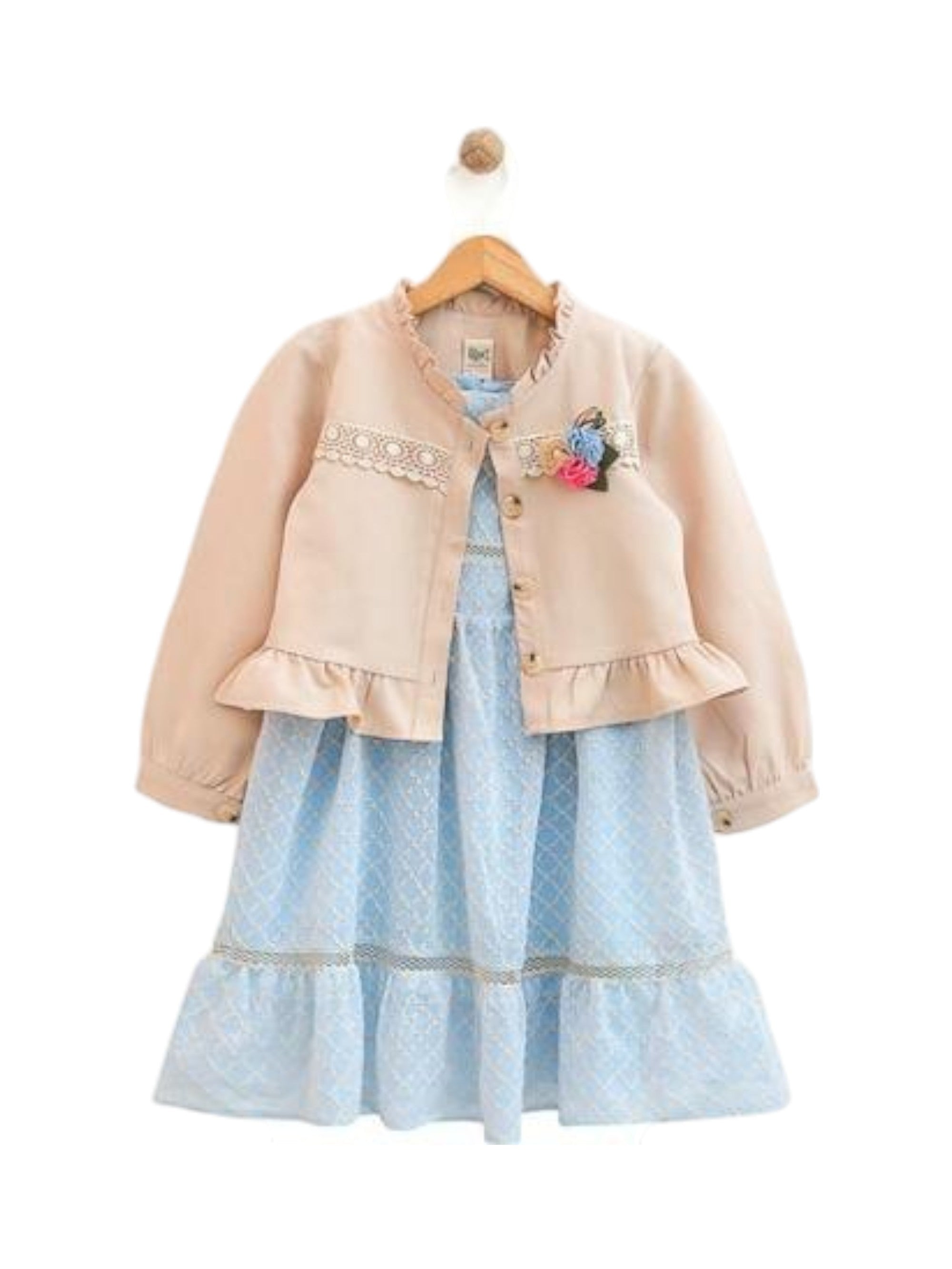 LENA DRESS WITH GABARDIN JACKET - BLUE