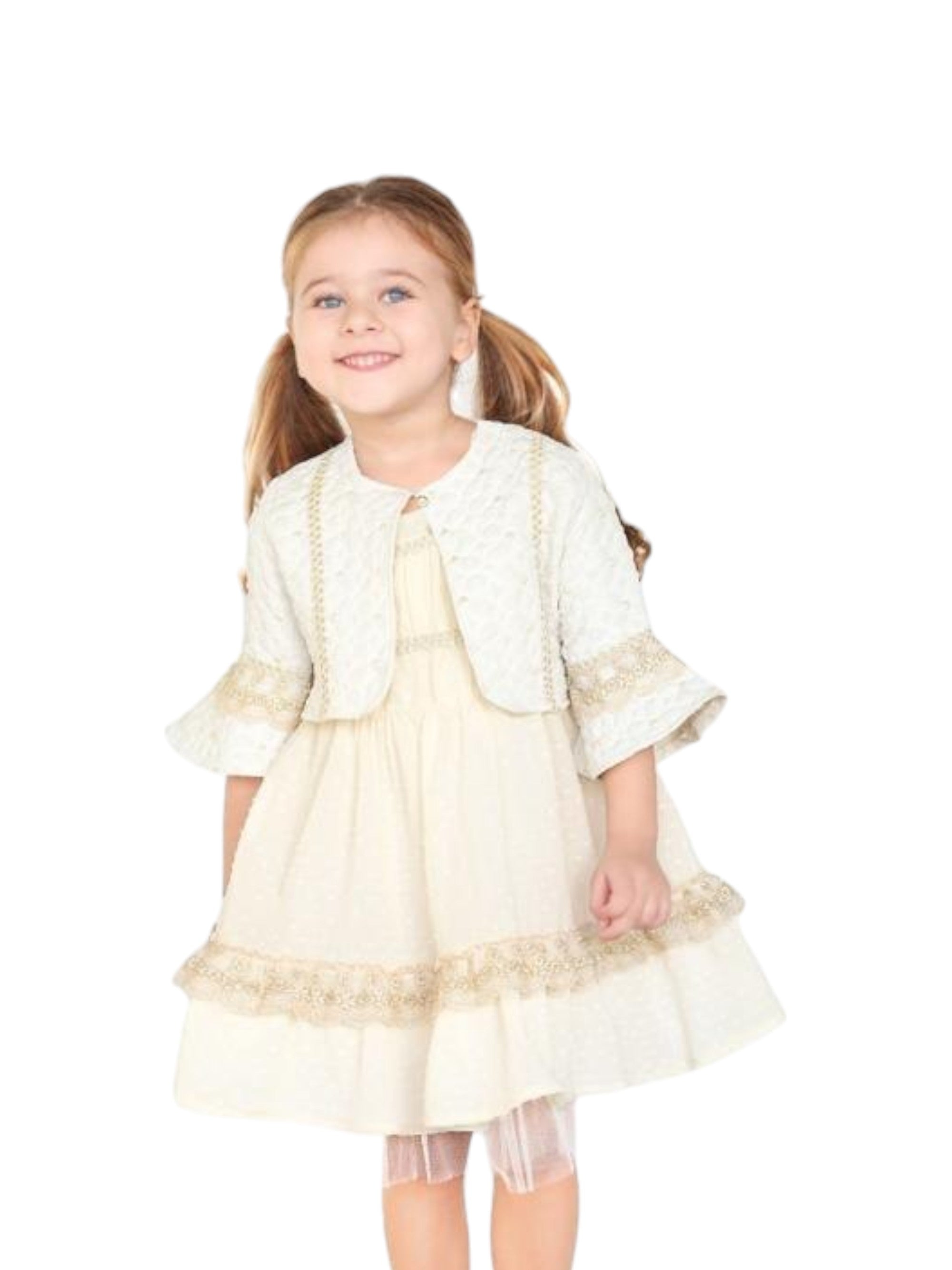 LEYLA JACQUARD DRESS -BOLERO SET - ECRU - 2Y is backordered and will ship as soon as it is back in stock.