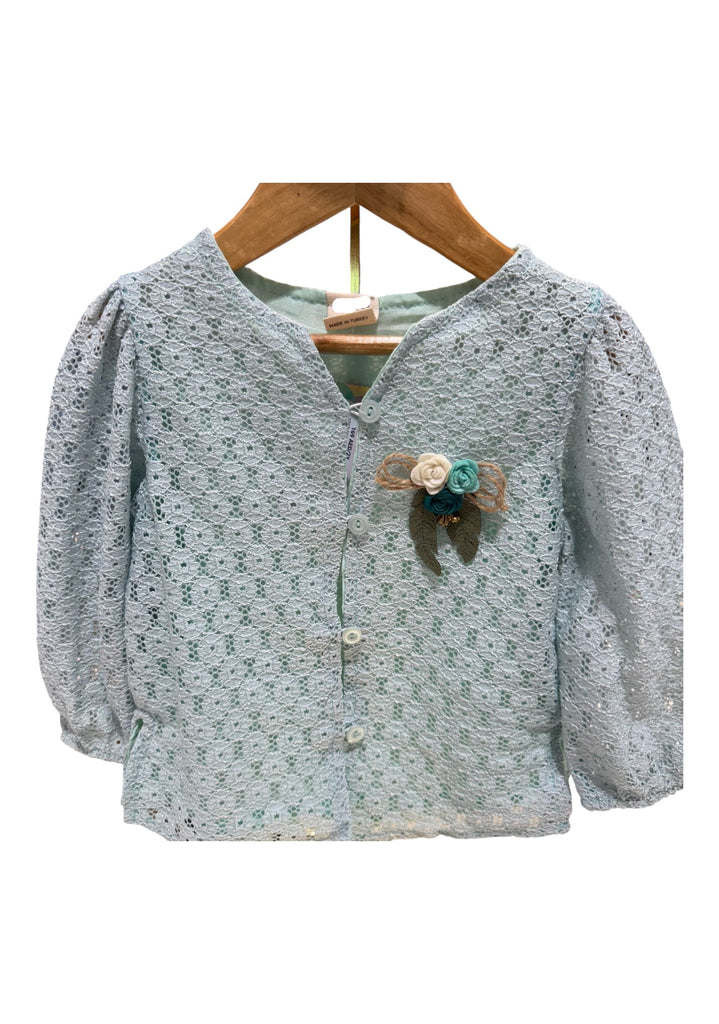 LACE CARDIGAN AND DENIM SET.