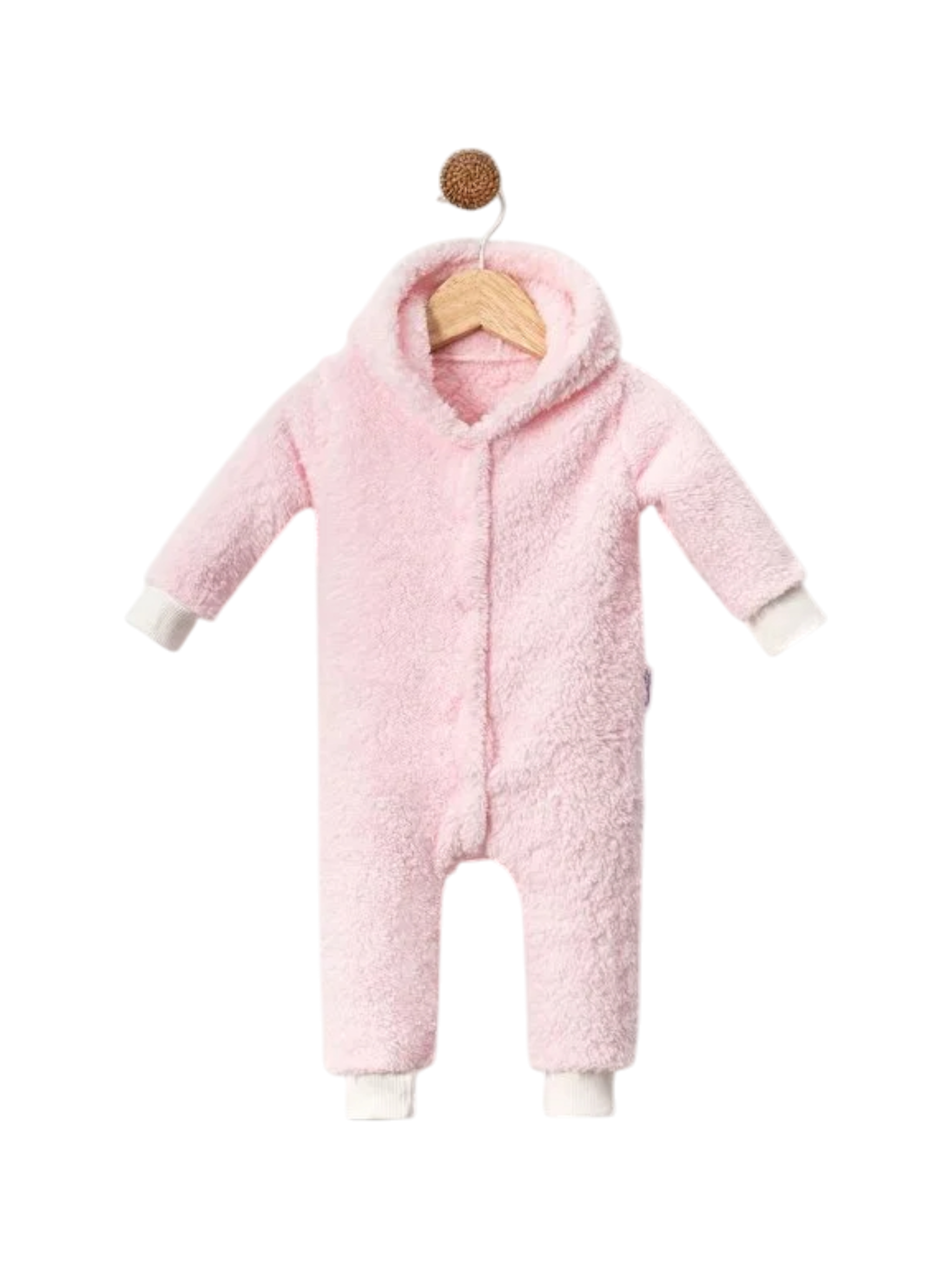 This adorable pink baby onesie features a hooded design and soft welsoft plush fabric, offering comfort and style for little ones. The plain-patterned onesie has long sleeves and a skinny-fit trouser design for a snug fit. Made from 100% cotton, perfect for casual everyday wear. Made in Turkey.