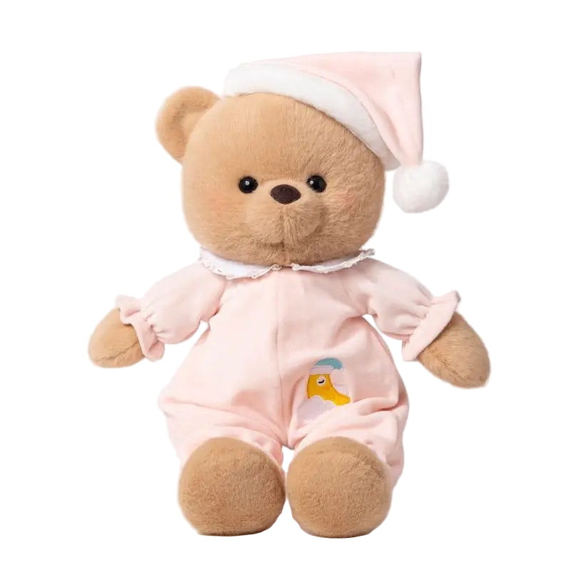 This adorable bear, dressed in its pajamas and hat, is designed to help little ones drift off to a peaceful sleep. Made from safe and durable materials, it’s the sweetest sleep companion your child will love.