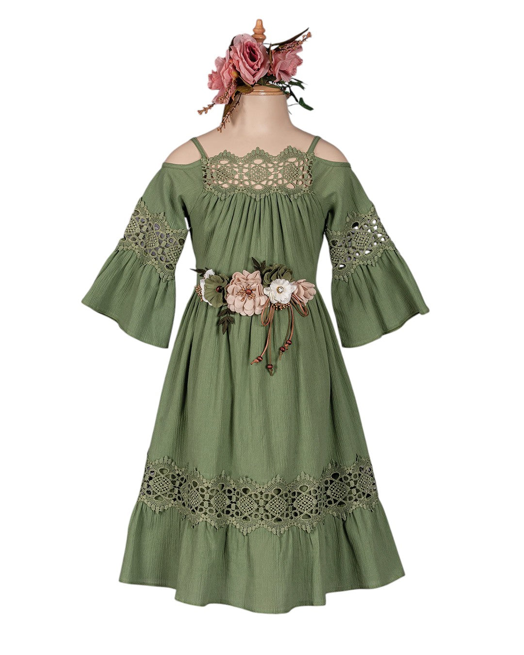 SEZEN BOHO SOLID DRESS - KHAKI - 6Y is backordered and will ship as soon as it is back in stock.
