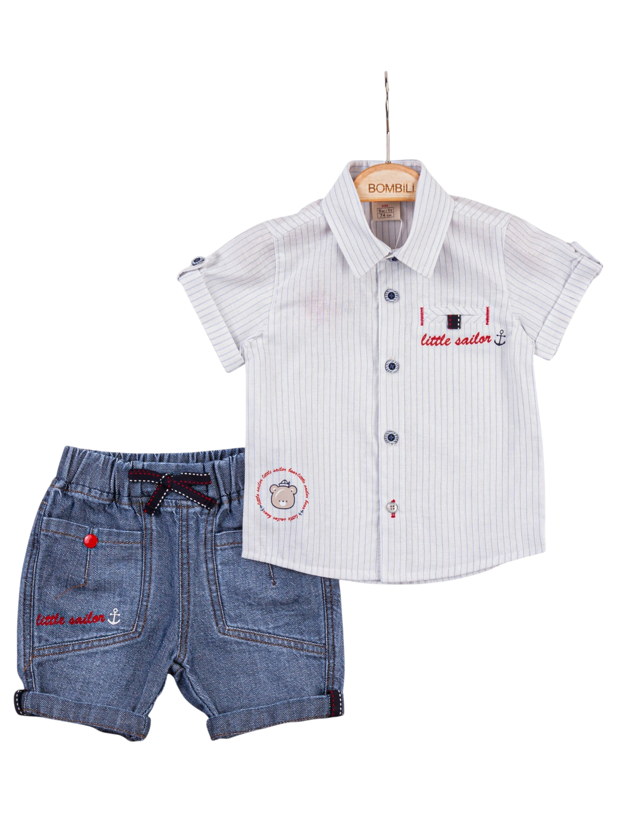 This sea-themed boys’ shirt and denim shorts set offers a comfortable and stylish outfit for summer, made from lightweight and breathable fabrics.
