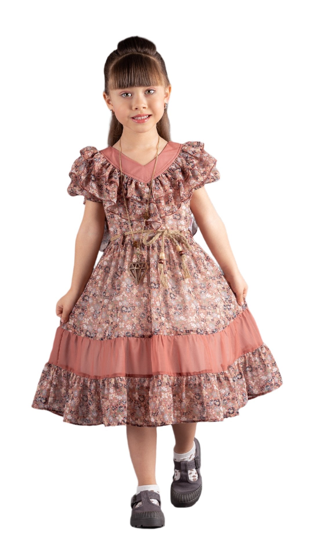 TULIN RUFFLED CHIFFON DRESS - BROWN - 6Y is backordered and will ship as soon as it is back in stock.