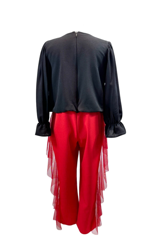 UMAY FRINGE PANT AND BLOUSE SET - BURGUNDY