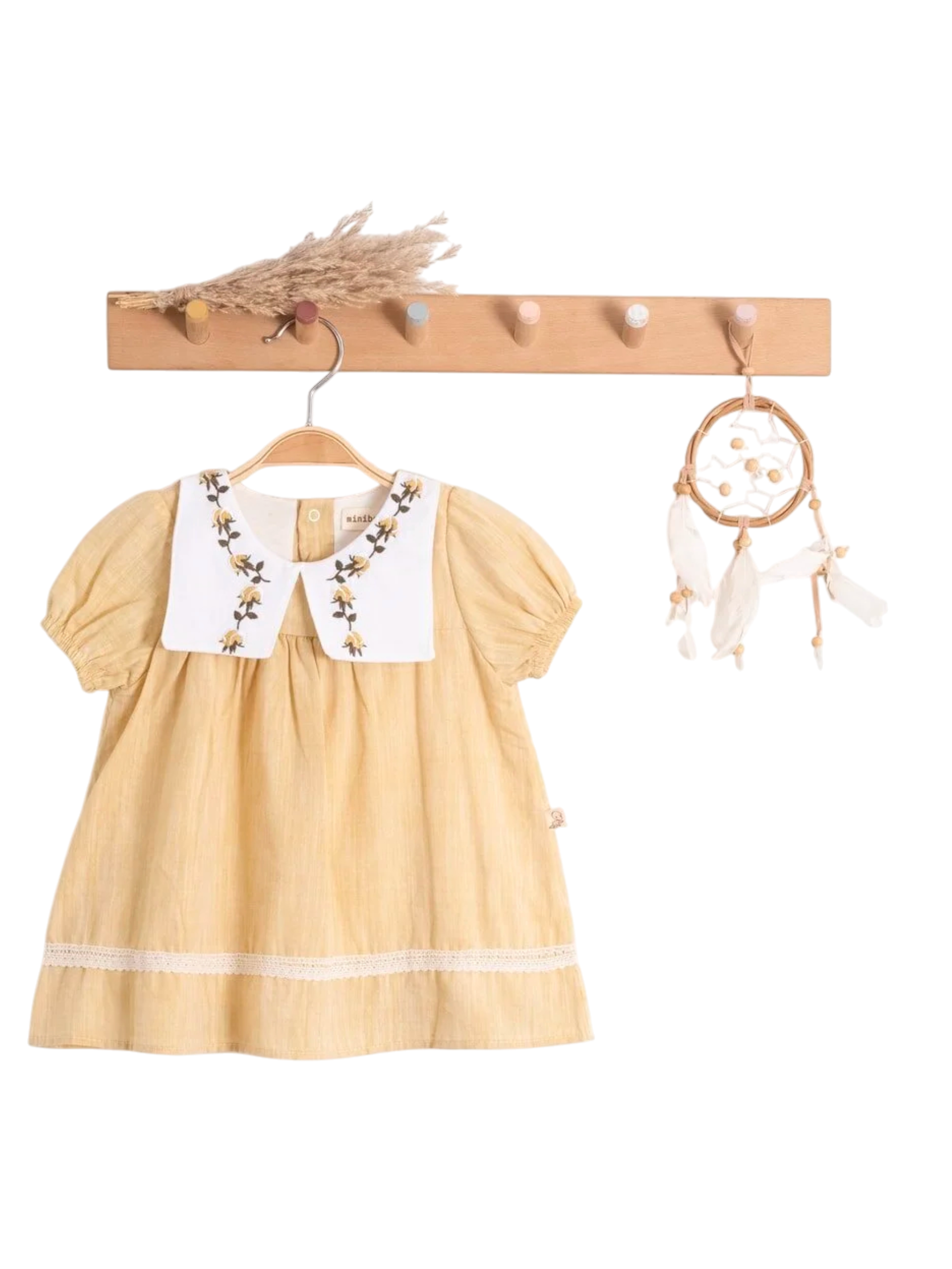 Made from 100% cotton, this dress offers a naturally soft touch while being gentle on your baby's delicate skin. Made in Turkey, it combines comfort and style with beautiful yellow floral embroidery.